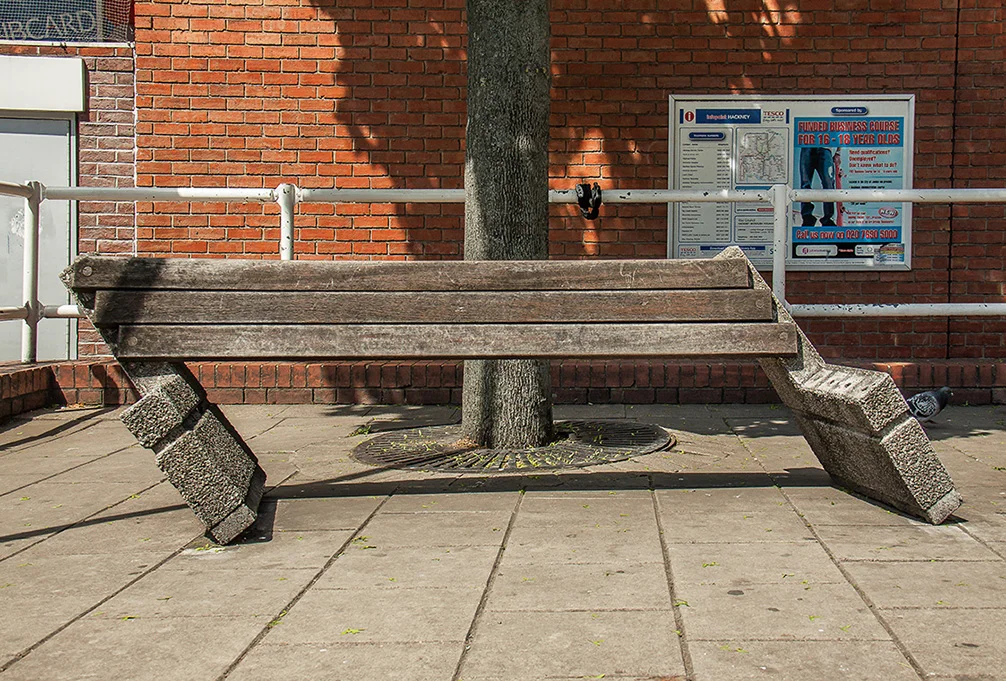 I came across 'Wobbly Legs', a surreal-looking bench, next to a busy road on Morning Lane, Hackney. The rickety street furniture reminded me of someone after a night out, unsteady on their legs, twisting and shifting to try to keep their balance.